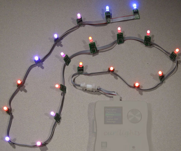 I also plan to clean up the form factor. By using surface mount LEDs and placing the components in line with the connecting ribbon cables, the string of lights will fit in 1/2" tubing. This way the electronics are hidden away and can be made weather-proof as well.