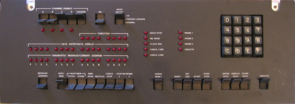 I found this panel on EBay. Like the PDP-11/70 panel, I'd like to re-animate it someday. The PDP-11/70 is very well documented and widely understood. This panel, unfortunately, is not. I have no documentation about it and no idea about what system it's off of.